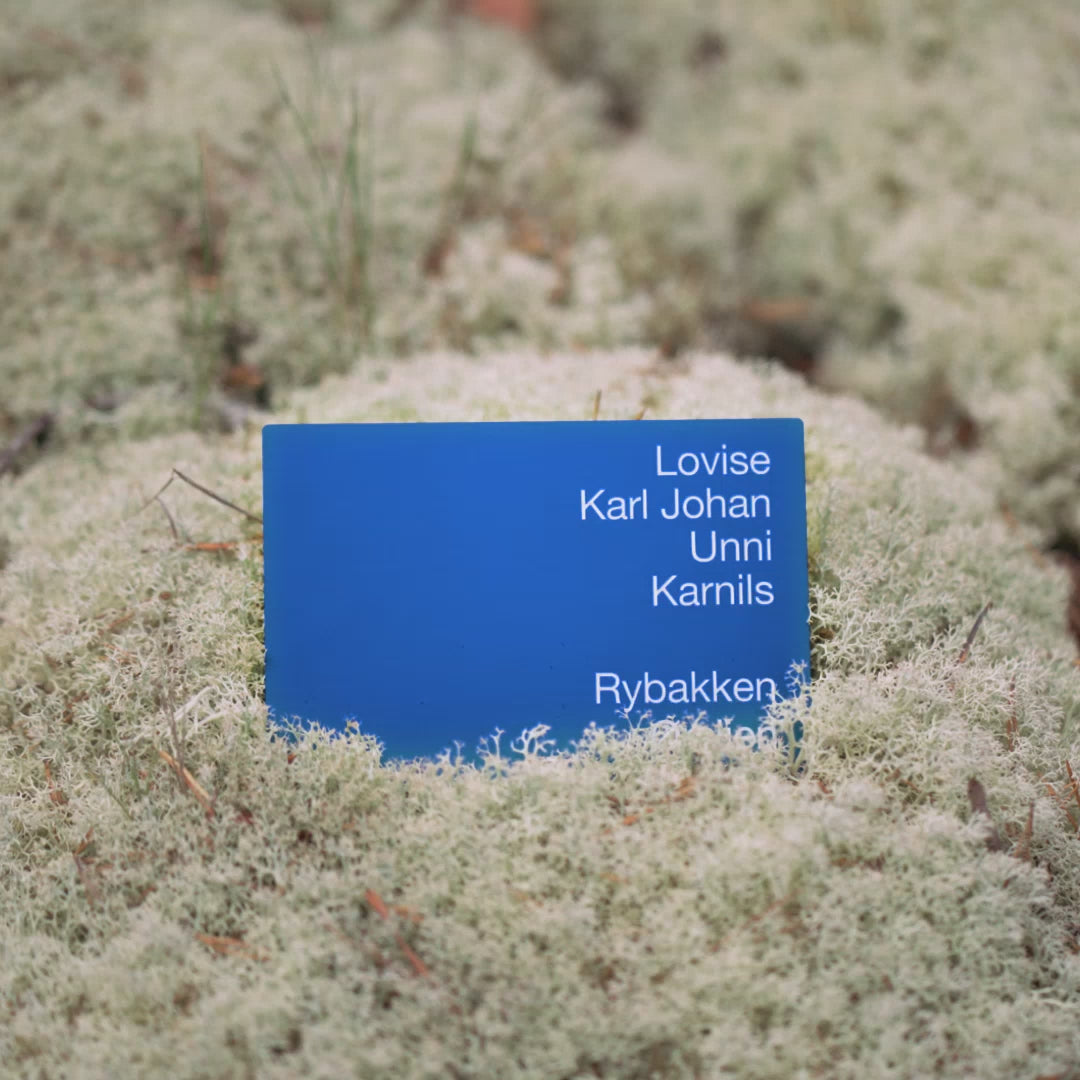 Friskt og moderne liggende aluminiumsskilt med høyrejustert tekst. Det er plass til 6 tekstlinjer og mellomrom mellom linje 4 og linje 5. Teksten er høyrejustert.
