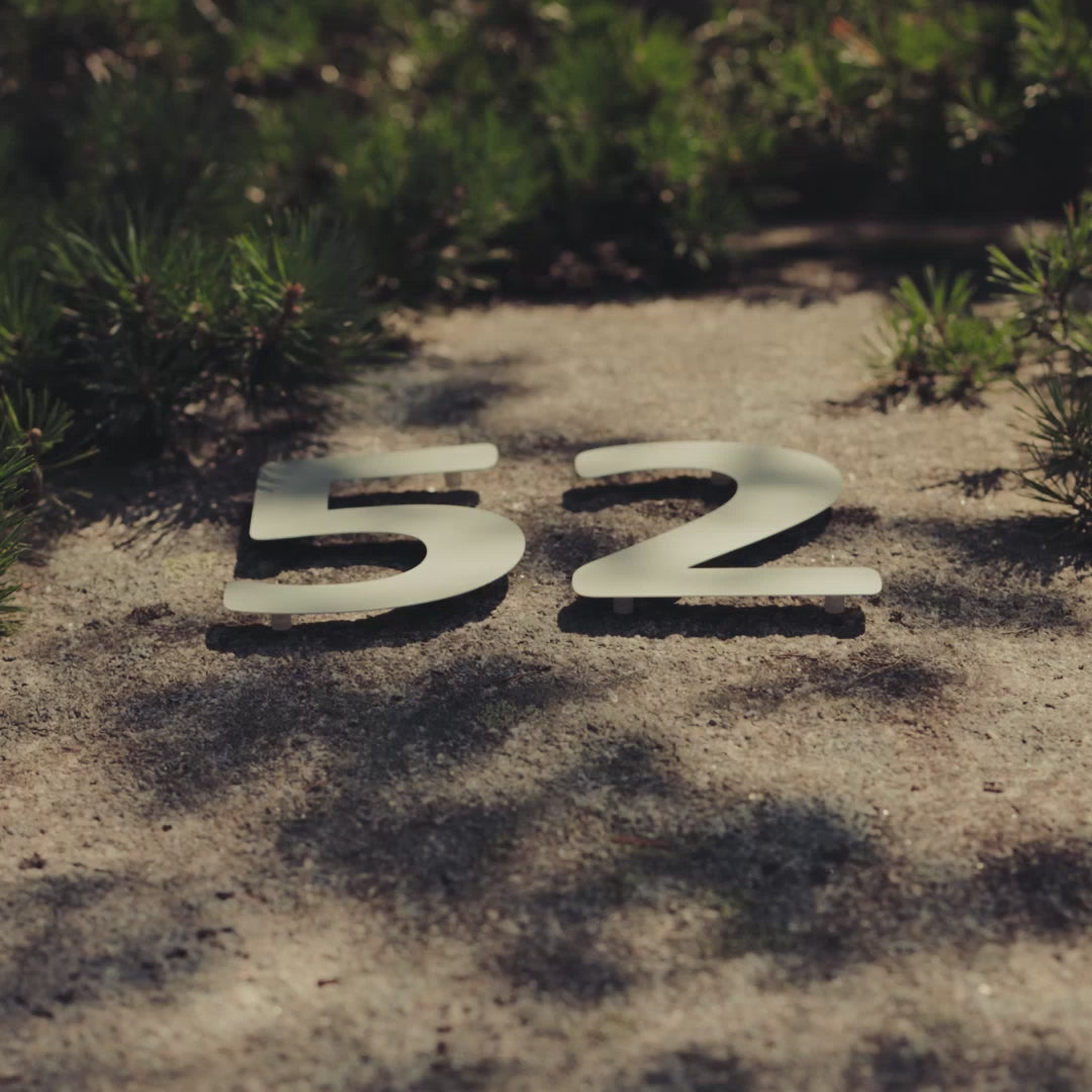 Trendy husnummer i eloksert aluminium for et flott uttrykk på husveggen. Bestill løse tall og bokstaver - enkelt og fleksibelt. Velg mellom stor eller liten størrelse.