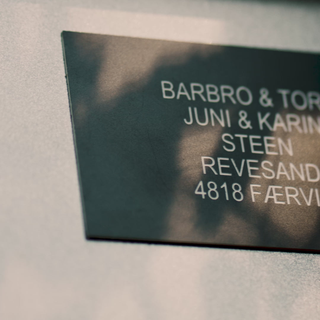 Postkasseskilt produsert i plast med værbestandig UV-lakk. Plass til 5 tekstlinjer med gravert tekst. Skiltet har 5 års garanti.