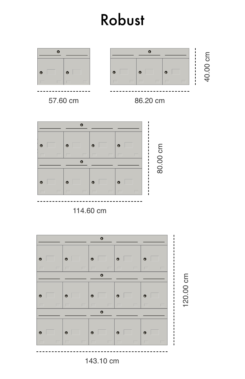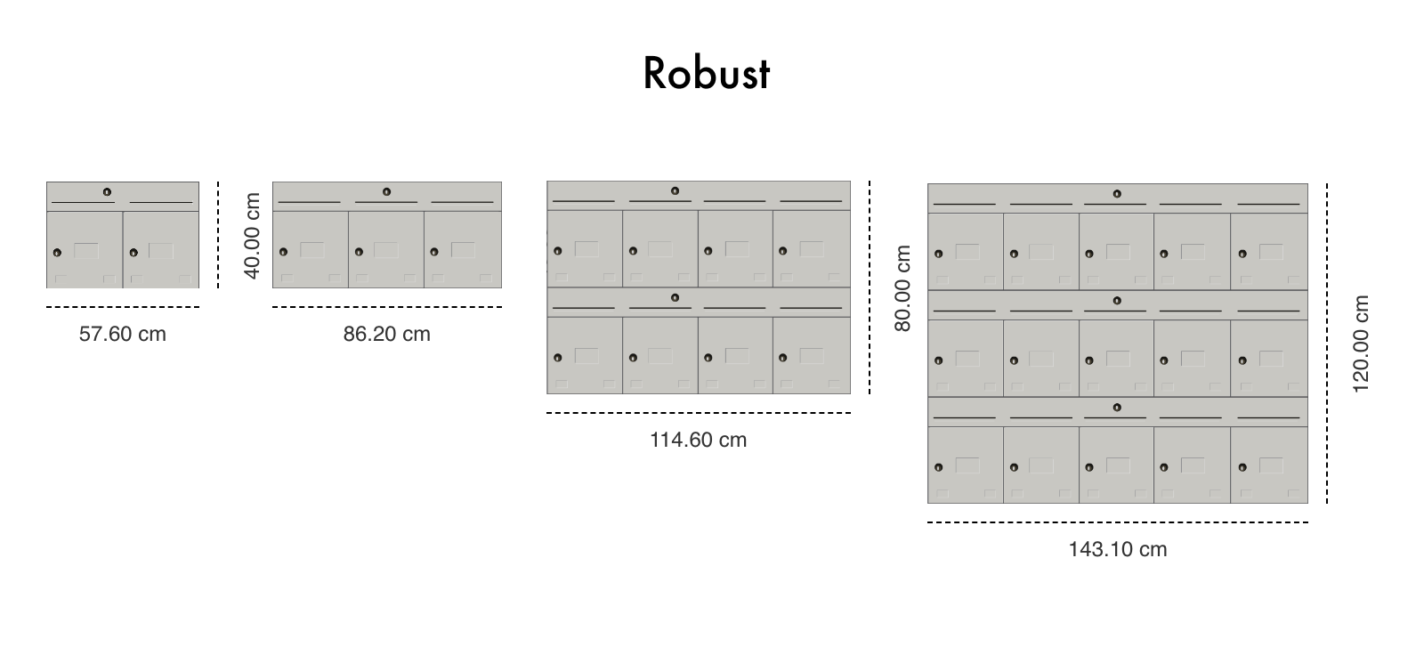 Norges mest brukte innendørs postkasse! Robust er en meget allsidig postkasse-løsning basert på mer en 30 års erfaring. Den har med tiden utviklet seg for å tilpasse vår tids behov for god plass og sikker oppbevaring av post, men beholder samtidig sitt tidløse, klassiske design.