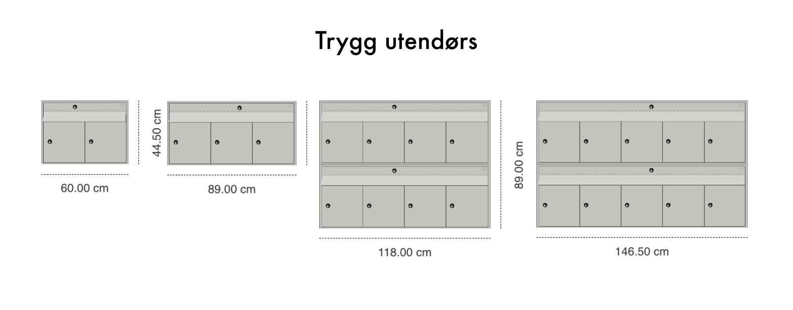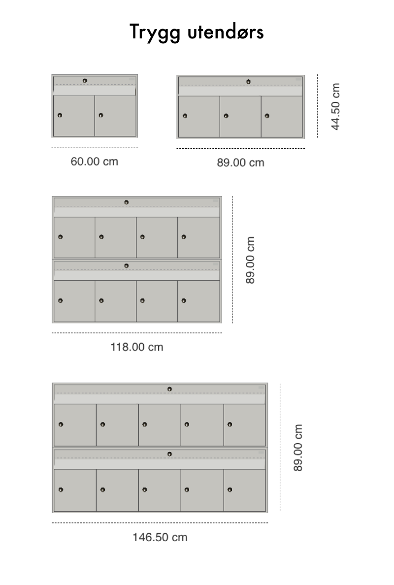 Norges mest solgte utendørs postkasse! Trygg er en av de sikreste postkassene på markedet. Selges i moduler med 2-5 rom som kan monteres i flere høyder. Trygg kan leveres i ønsket farge og kan også leveres med elektronisk lås.